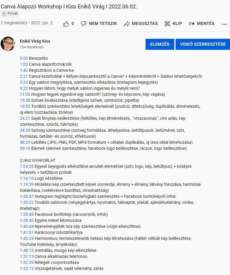Enikő Canva workshopja nagyon hasznos és részletes volt, minden kérdésemre választ kaptam belőle és a workshopon tanultakat már a gyakorlatba is elkezdtem átültetni. Csak ajánlani tudom mindenkinek ![]()
